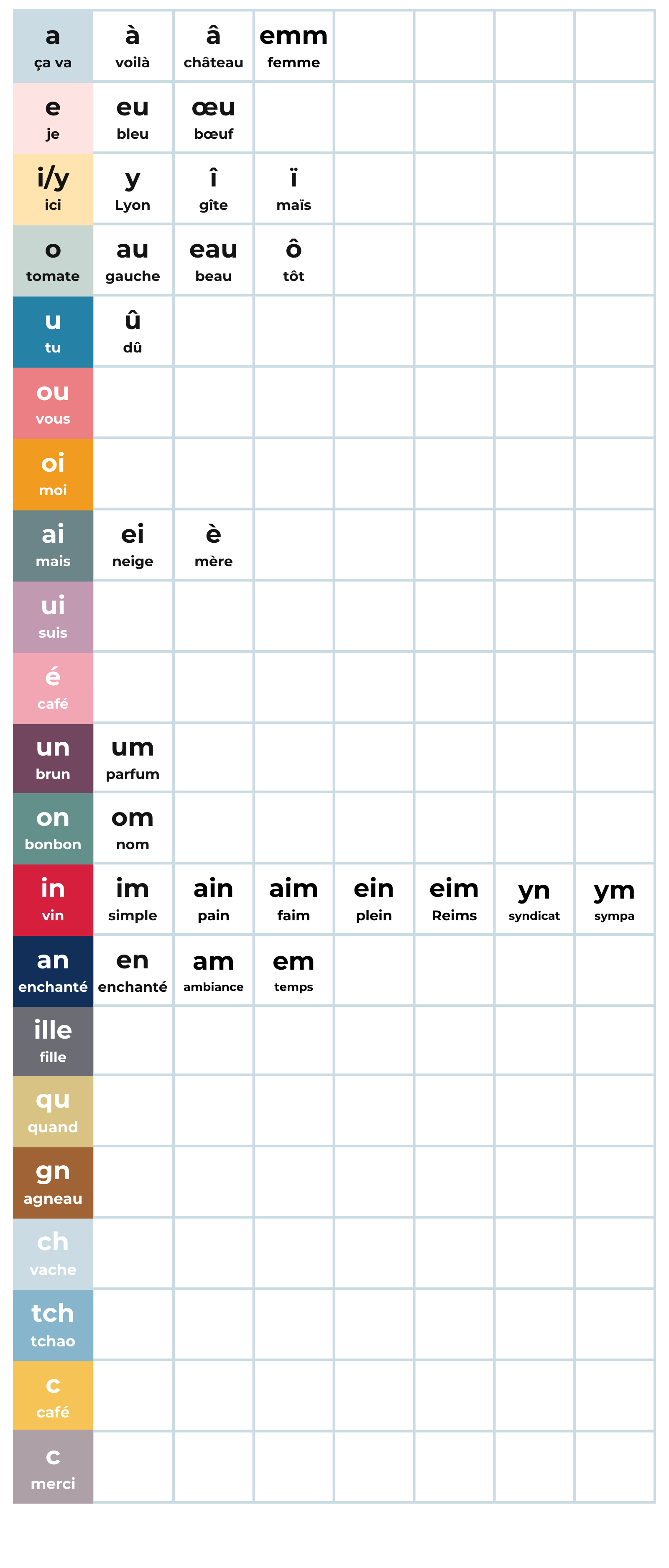 I think that even if it’s not crystal clear right away, it will become so as you start to notice more and more examples in your workbooks. I hope, too, that as this idea firms up in your head, it will help you to feel more confident in pronouncing French words you’ve not previously seen.
